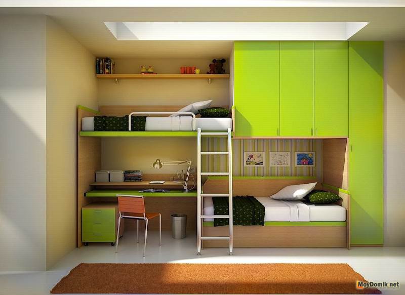 Интерьер маленькой детской комнаты для мальчика и девочки
