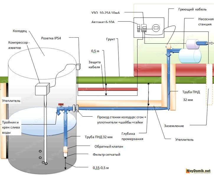 Подробное описание процесса устройства водоснабжения частного дома из колодца.