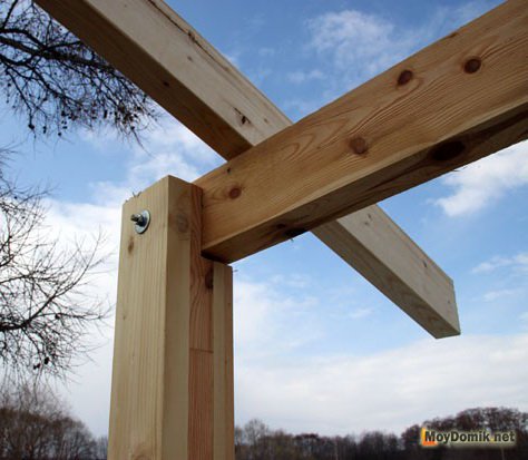 брусья сверху на торцы стоек. Скрепление элементов лучше всего производить при