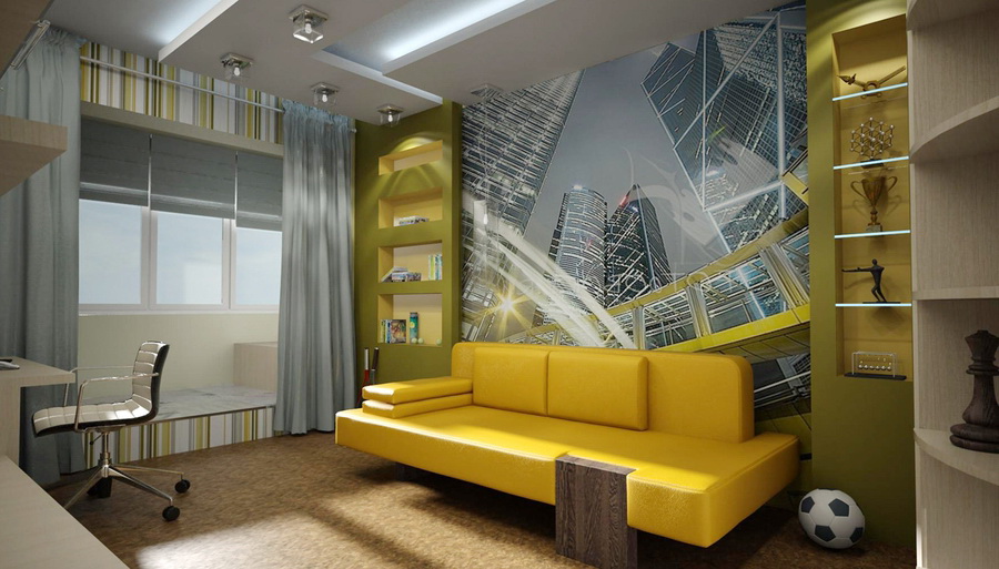 Очень эффектно будут смотреться флуоресцентные обои. При дневном освещении – это обычные трехмерные обои с ярким рисунком. Но с наступление темноты они преображаются: начинают излучать мягкий, струящийся свет.