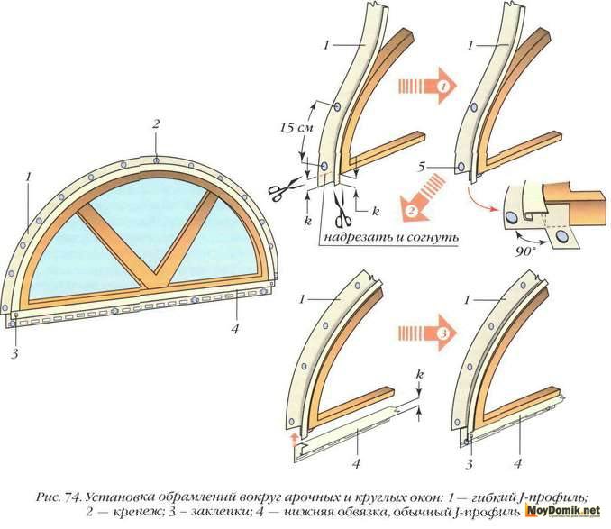 Отделка арки виниловым сайдингом отличается от отделки обычного проема только способом монтажа J-планки.