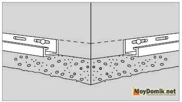 Монтаж планки на углах осуществляется не полностью. Поскольку для обустройства угла применяется специальная угловая планка.