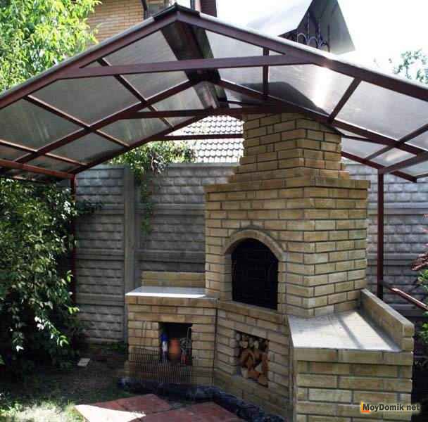 Поэтому, если вы планируете мангал, обустраивать его нужно до монтажа поликарбоната. В качестве материала для его строительства можно использовать: