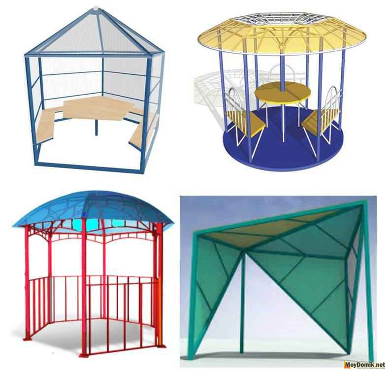 Прежде чем приступить к работе, немного разберемся, какую беседку выбрать. Существует несколько видов и типов беседок из поликарбоната: