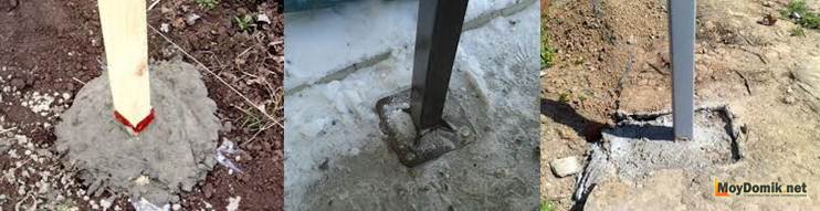 - установить опоры и забетонировать, или прикрутить болтами к бетонному основанию.