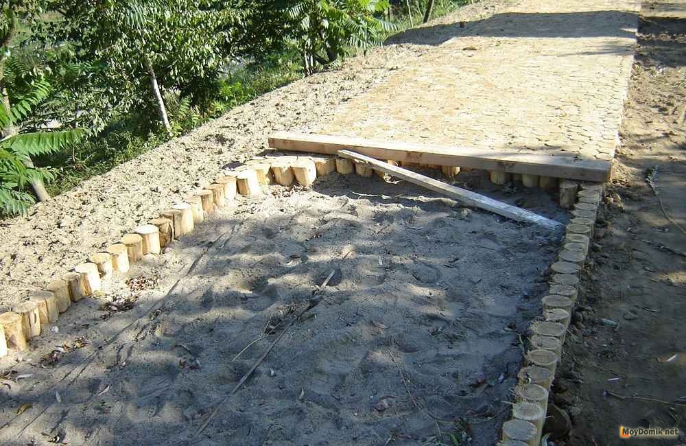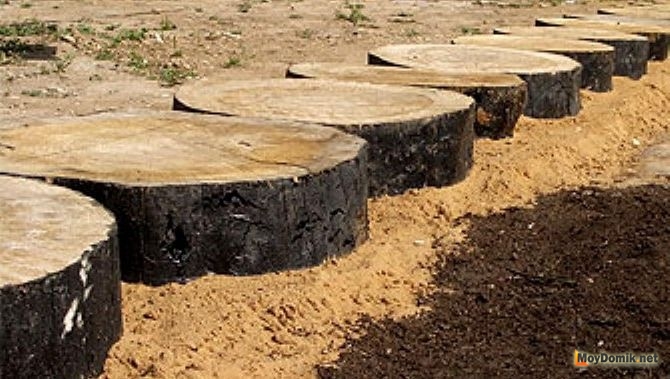 Дорожка из деревянных спилов может именоваться по-разному: из срезов, пеньков (плашка, чурбан, пенек, полено, торцы бревен), но способ строительства будет идентичен.