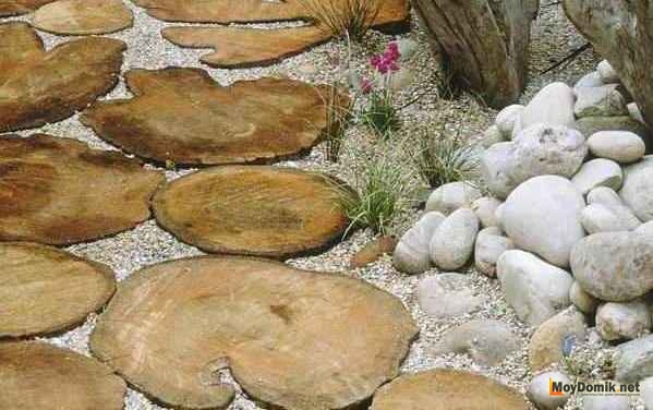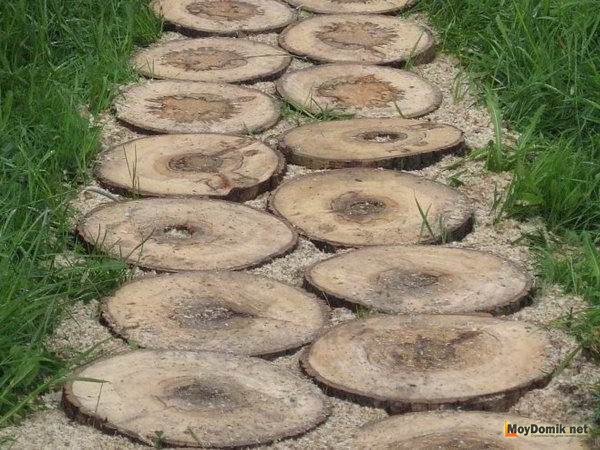 - возможность сделать уникальную садовую дорожку из дерева. Ведь все спилы разные, а значит, рисунок повторить невозможно;