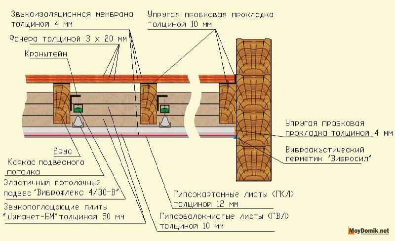 Мембранная звукоизоляция перекрытий в деревянном доме по потолку