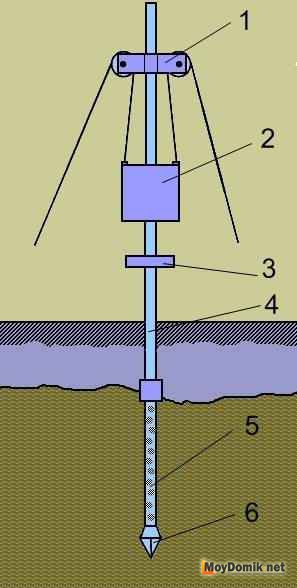 Выше упоминалось, что скважину можно забивать или бурить, какой из методов лучше, трудно сказать, все зависит от грунта, места и возможностей. Если специализированного оборудования для бурения скважины нет, а нанимать бригаду не хочется, то можно самостоятельно построить бурильную вышку – забивной станок.