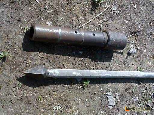 Конус (наконечник, игла) должна быть изготовлена из прочной стали. Существует несколько способов устройства клина: круглая форма вытачивается на токарном станке, но многие советуют делать граненный. Также делают из уголка в виде четырехгранника. Главное, чтобы копьеобразный наконечник был больше в диаметре чем сама труба.