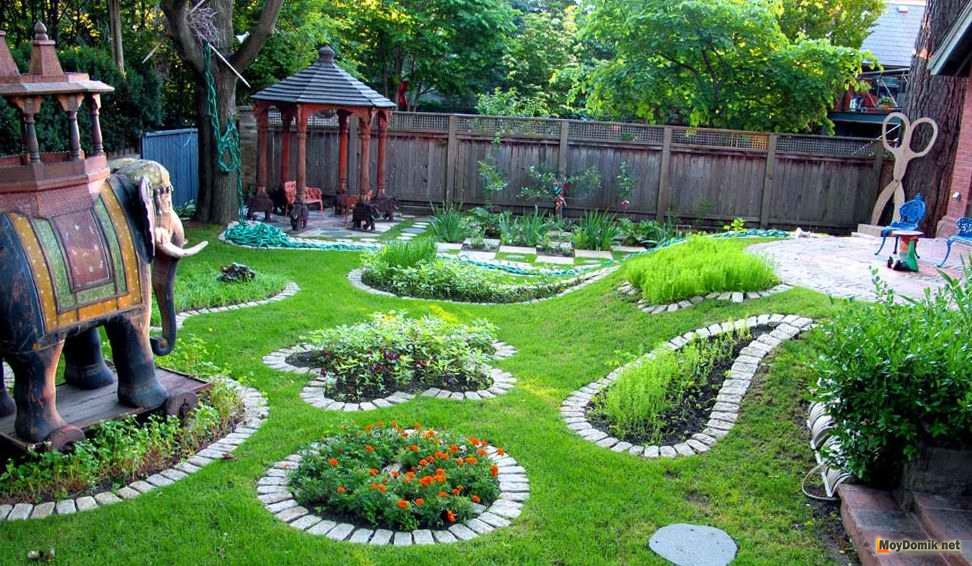 Чтобы клумба из булыжников или кирпичей выглядела красиво, ее дизайн должен быть тщательно продуман. При этом должны быть учтены: