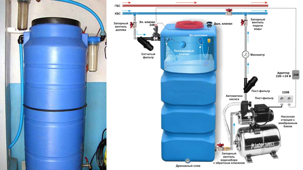 Использование емкости (бака для воды)