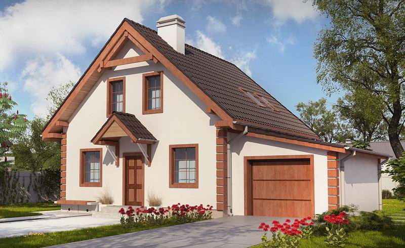 Проект одноэтажного дома с мансардой и гаражом на одну машину
