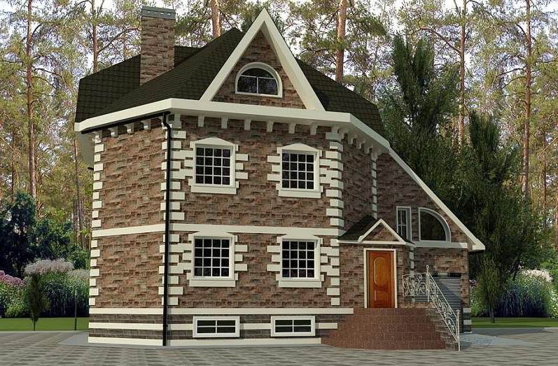Проект двухэтажного дома с мансардой и гаражом на одну машину