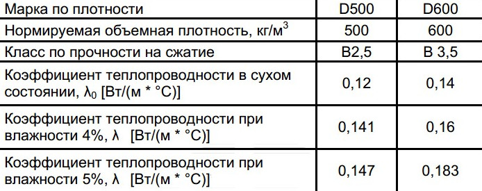 Исходя из значения коэффициента теплопроводности, можно сделать вывод, что газобетон с маркой плотности D500 теплее D600 на 15-17%.