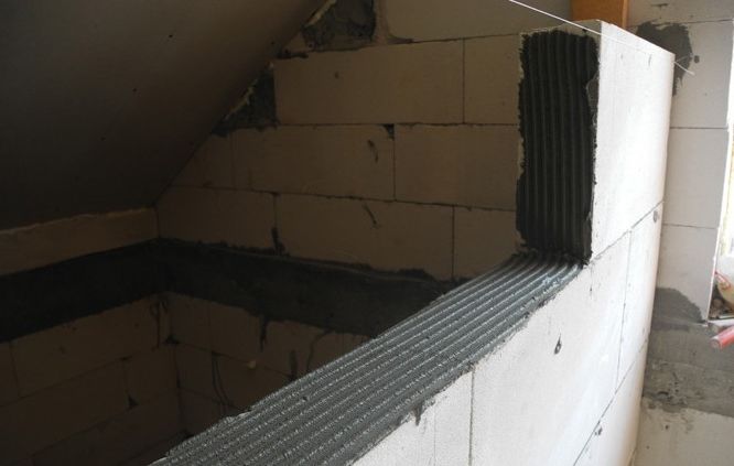 Назначение П-образных блоков – установка скрытых элементов строительства (для перемычек и монолитных поясов). По технологии, кладка стен из газобетона предусматривает обязательное армирование, первого и каждого четвертого из последующих рядов. Именно для того, чтобы удобно было спрятать арматуру предназначены пустоты в блоках U-образной формы. После укладки армирующего металла пространство обязательно заполняется бетонным раствором или клеем. В данном случае следует использовать более дешевый материал для заполнения.