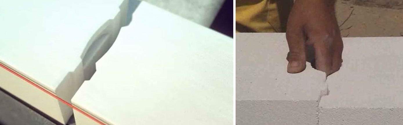 Формирование системы соединения паз-гребень по сложности производства относится к высокотехнологичной обработке блока. Поэтому они отличаются более высокой стоимостью. Однако, она оправдана поскольку: увеличивает скорость работ, снижает расход клея (вертикальные соединения не нуждаются в склеивании), появляется возможность ликвидировать мостики холода в местах вертикального соединения.