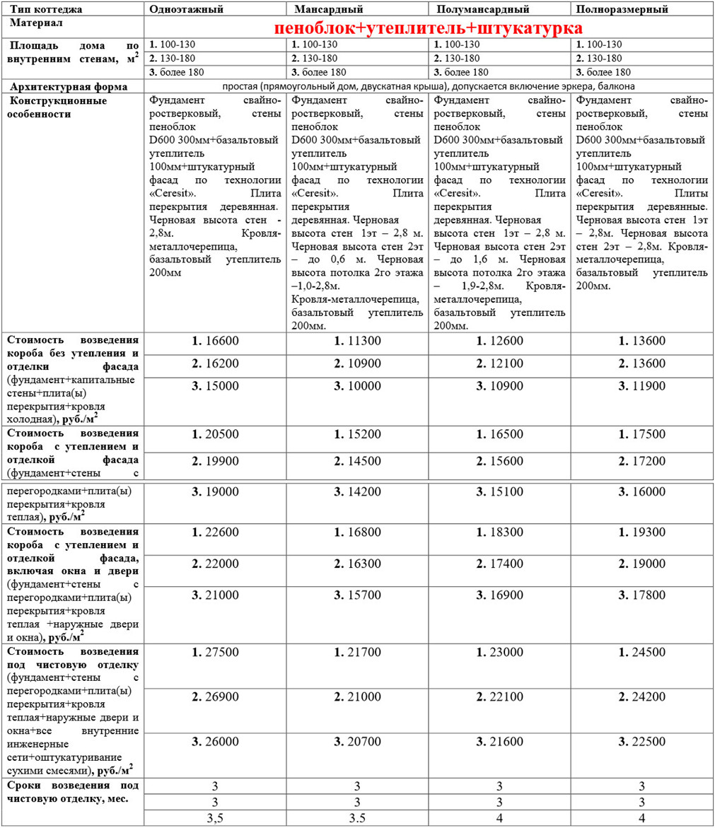Приблизительная смета на строительство дома из пенобетона приведена в таблице.