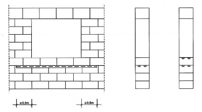 Арматура укладывается под каждый проем и над ним. При этом ее можно укладывать по всему ряду, а можно только под проем. Но длина армирования должна превышать ширину проема на 700-900 мм с каждой стороны.
