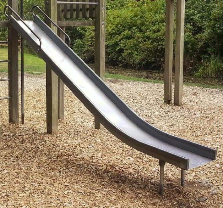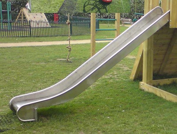 Следует помнить, что у металлического желоба есть один существенный недостаток, он очень сильно нагревается летом – спуск по разогретой поверхности может привести к появлению ожога, а также сильно охлаждается зимой, что также не доставляет радости малышам.