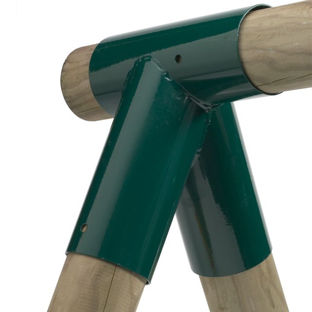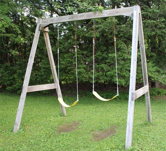 Иногда его называют опора в виде перевернутой буквы «V». Более устойчив, по сравнению с предыдущим вариантом. Такой вариант позволяет не только повесить качели, но и создать детский уголок.
