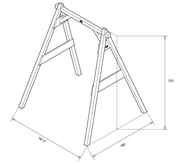 Считается самой экономичной моделью. Для его изготовления используется меньше пиломатериала. Кроме того, опоры не мешают передвижению ребенка, и не могут стать причиной его травм по неосторожности. Однако для устойчивости конструкция нуждается в бетонировании опор, поэтому является стационарной. Каркас идеален для установки на мягкой почве и изготовления подвесных секционных качелей.