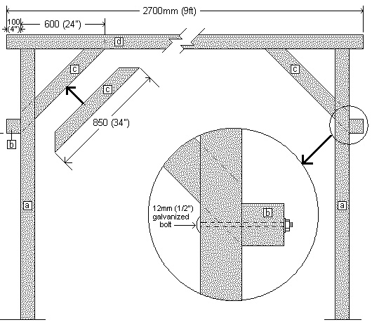 Является разновидностью Л-образного, только крепление брусьев опор выполняется не в месте их стыка, а чуть ниже, на расстоянии 150-200 мм. В месте пересечения вертикальных брусьев укладывается перемычка. Это более простой способ изготовления опоры. Следует отметить, что такой каркас нуждается в дополнительном усилении в виде бокового упора.