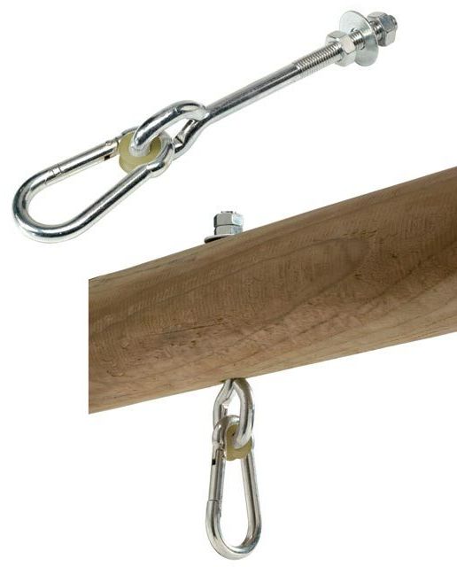 Крепление подвеса качели и сидения можно выполнить несколькими способами с использованием разных крепежей: