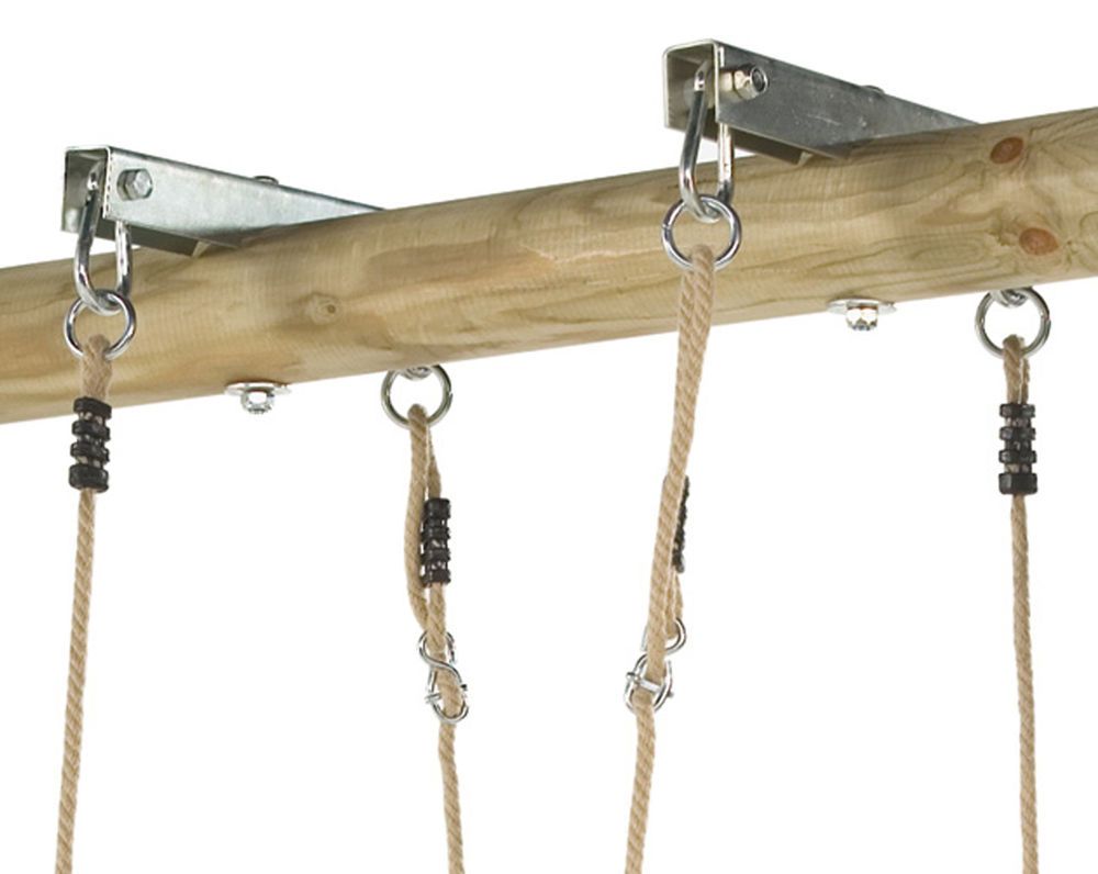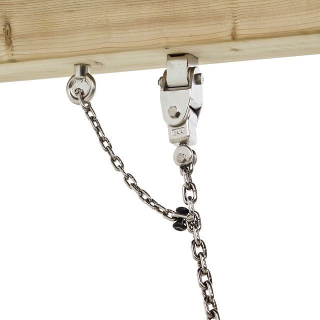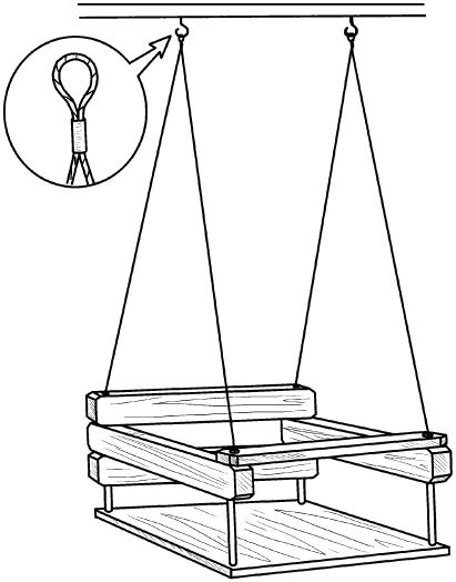 Подвес (трос, веревка или цепь) крепится к перекладине. Подвес – это качельный узел для крепления качелей на перекладине. На подвес приходится максимальная нагрузка, а значит, к нему выдвигаются особые требования по безопасности.