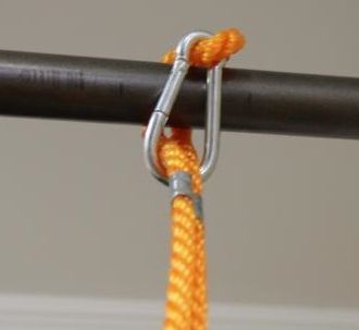 перекинуть веревку через перекладину и завязать или закрепить скобой;