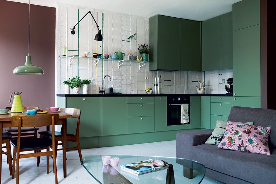 4. Кухня студия мятного цвета