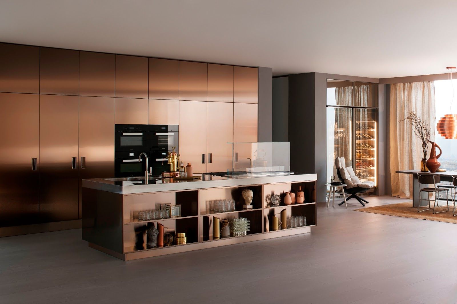 2. Медный цвет в интерьере кухни студии