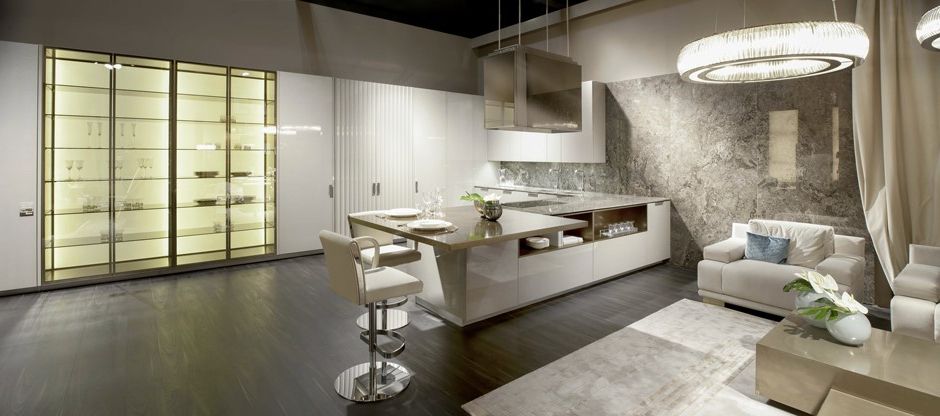 Универсальной формулы идеального интерьера кухни студии не существует! Но в 2016 году представление о дизайне студийной кухни в целом изменилось, задав новый вектор в интерьерах на 2017 год. Из подручного помещения, кухня студия трансформировалась в полноценное пространство для общения и жизни. Дизайнеры сознательно отказались от кричащего декора, считая, что зачастую им просто маскируют несовершенства. Для оформления кухонь, объединенных с гостиными, выбирают самые роскошные оттенки: черного, бронзы и шампанского, и не обходят стороной нержавеющую сталь, натуральный камень и древесину ценных пород.