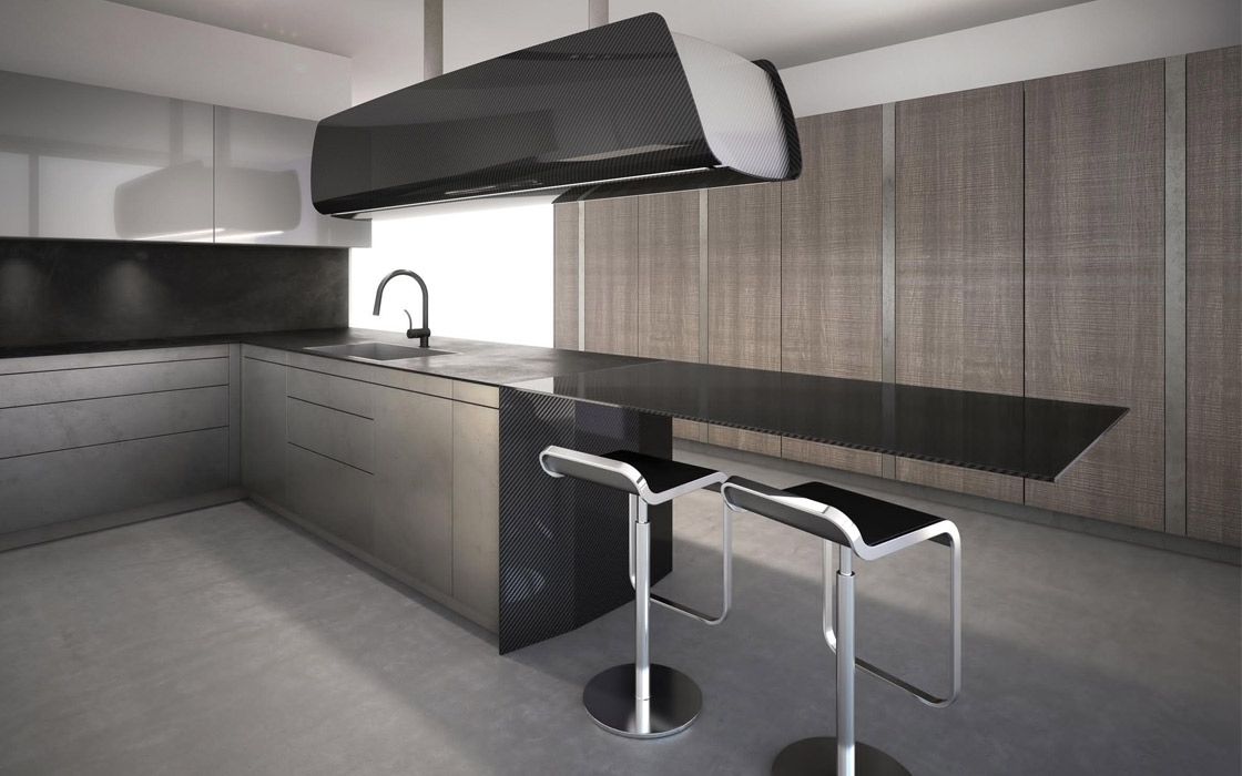 Кухонные фасады, столешницы и витражи – это хорошо и важно, но грамотный выбор начинается с вытяжки! Неправильно организованная вентиляция принесет вред и хозяевам, и мебели. Вытяжку в студию покупают бесшумную, но с самым высоким запасом мощности. Не нужно забывать и про дизайн. Некоторые авторские модели настолько футуристичны, что дальнейший интерьер начинает строиться вокруг них.