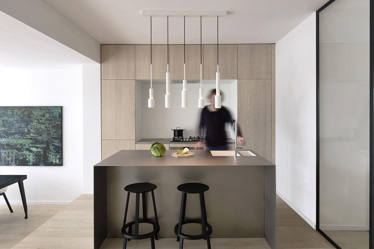 1. Строгая кухня студия в стиле минимализм