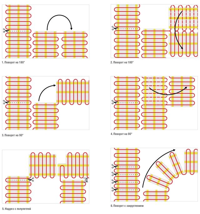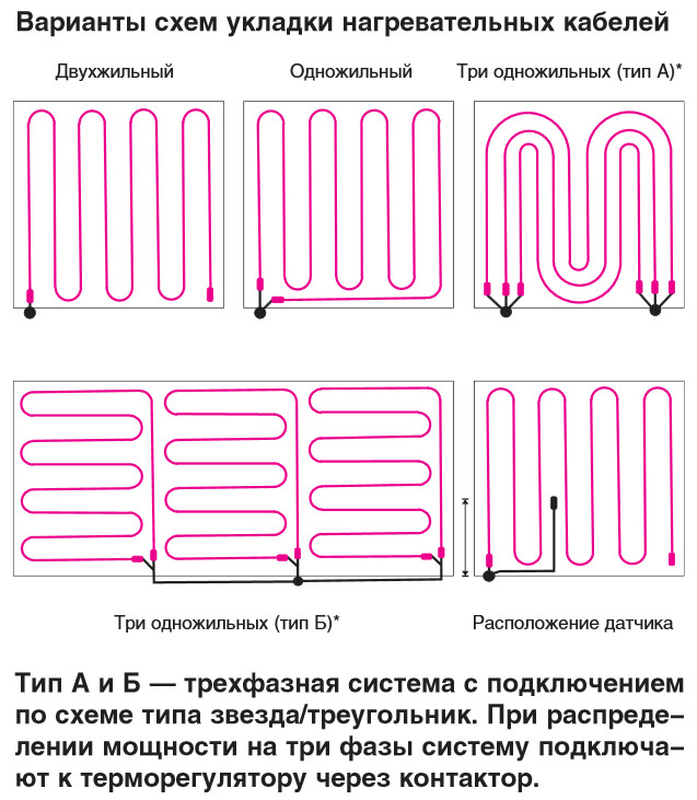 Варианты схем укладки нагревательных кабелей