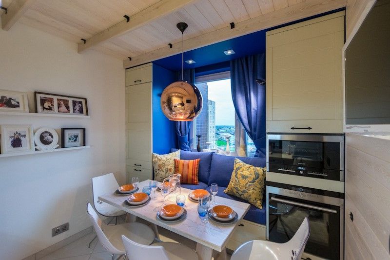 Как расставить мебель на кухне с панорамным окном в квартире-студии?