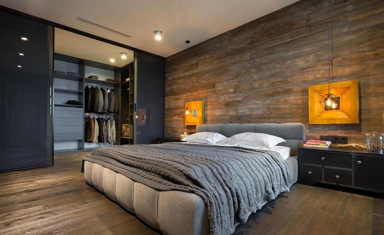В спальне не должно быть случайных вещей. Только то, что необходимо для комфортной жизни: большая кровать, удобная рабочая зона, пару прикроватных тумбочек и, возможно, вместительный гардеробный шкаф.