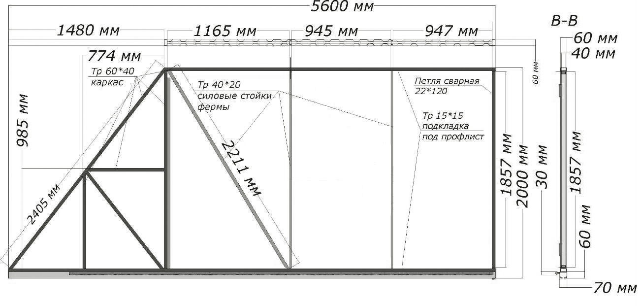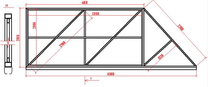 Чертеж откатных ворот из профнастила