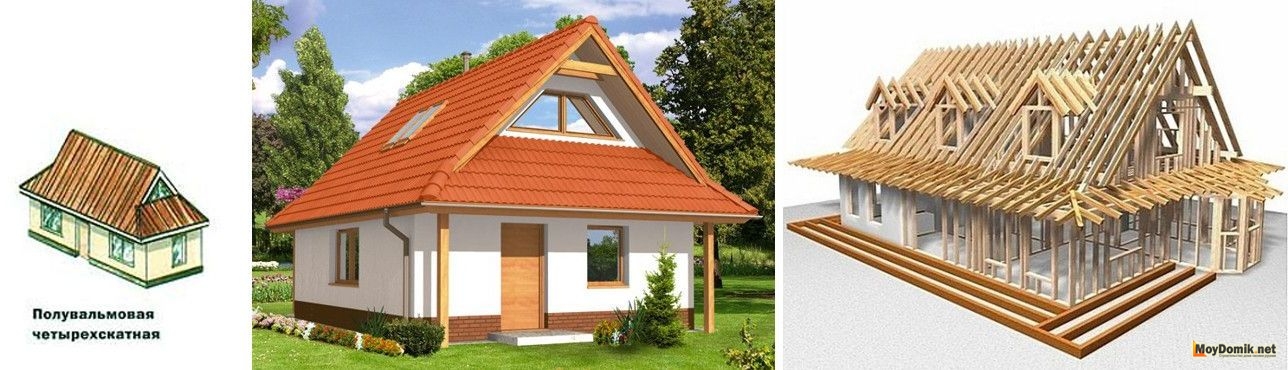Отличается наличием вертикальных фронтонов, в которых можно установить окна. На картинке видно различие двух разновидностей полувальмовых крыш (голландской и датской).
