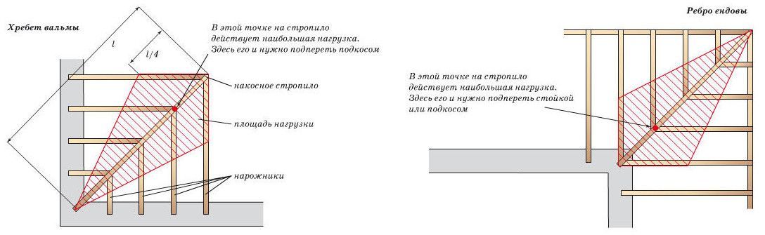При этом следует учесть, что точка максимальной нагрузки будет различаться в зависимости от места расположения – на хребте вальмы или на ребре ендовы.