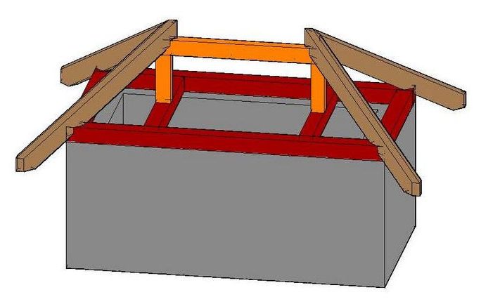Стойки выполняют функцию опоры при установке конькового бруса (оранжевый цвет на картинке).