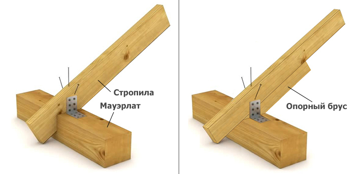 При монтаже нижнюю часть стропильной ноги упирают на мауэрлат.