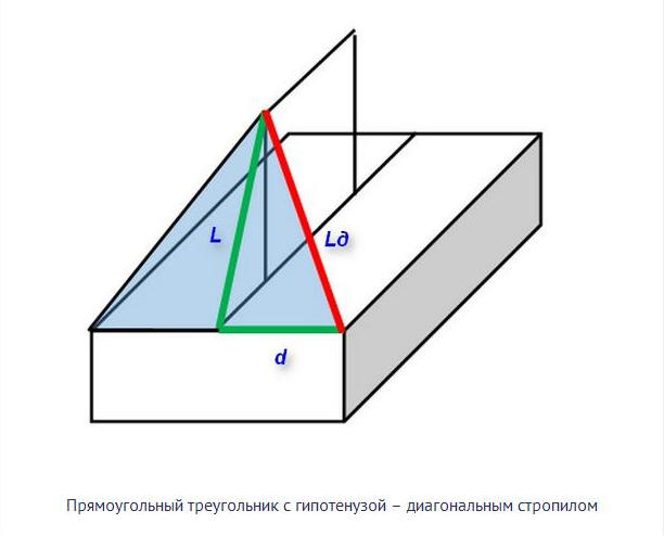 Наклон угла ската определяет заложение стропил. В свою очередь, заложение промежуточного стропила рассчитывается следующим образом: