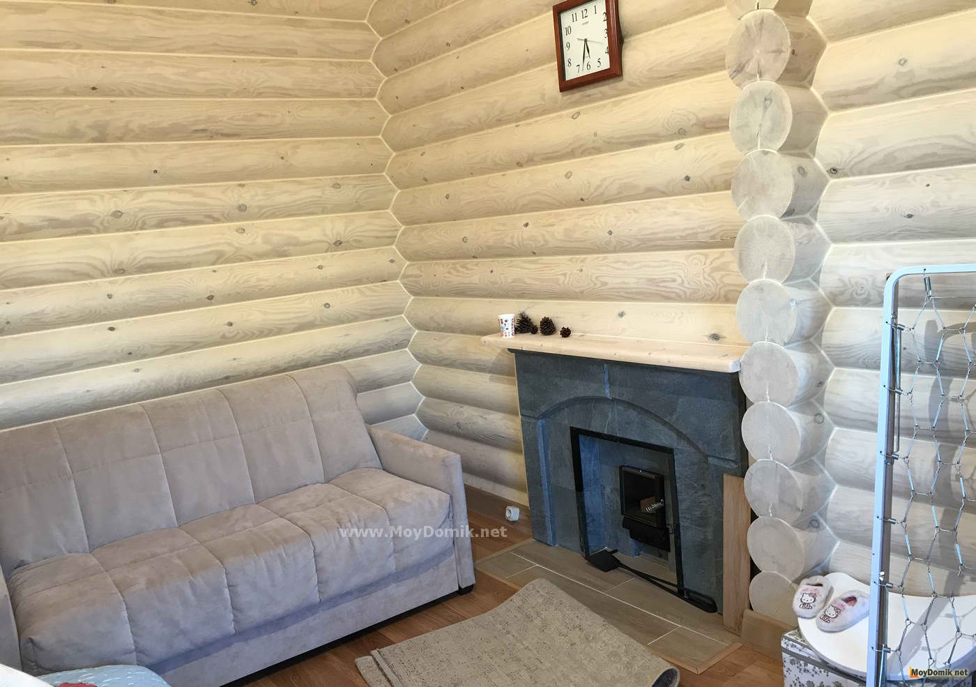 Интерьер бревенчатого дома с печкой или камином