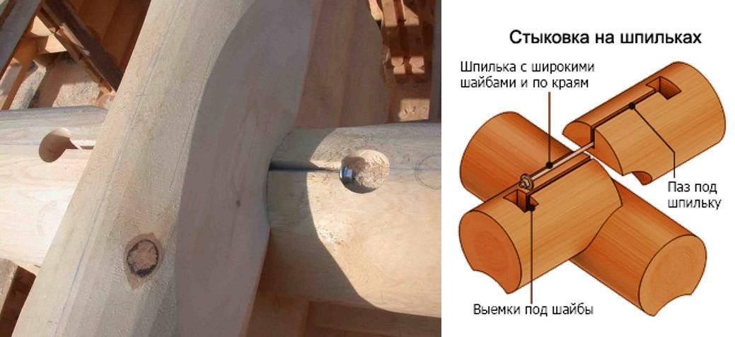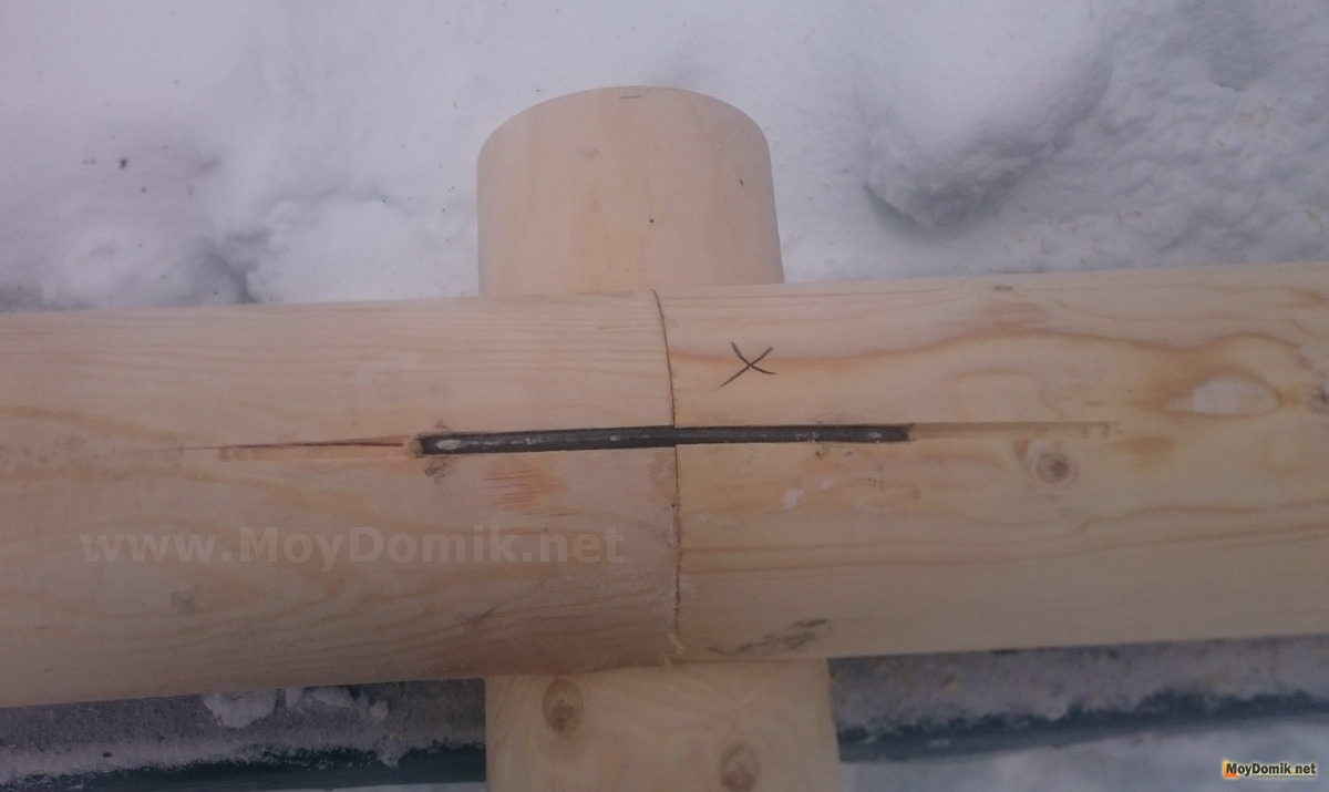 - после фиксации бревна нагелем подстраховочные гвозди вынимаются;