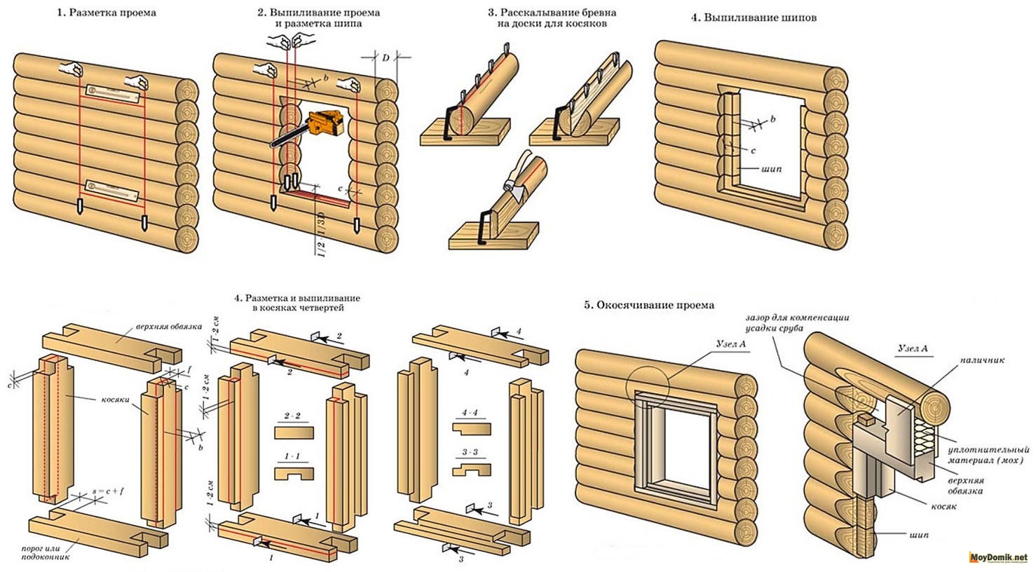- подоконные – бревна, уложенные от нижнего венца до оконного;