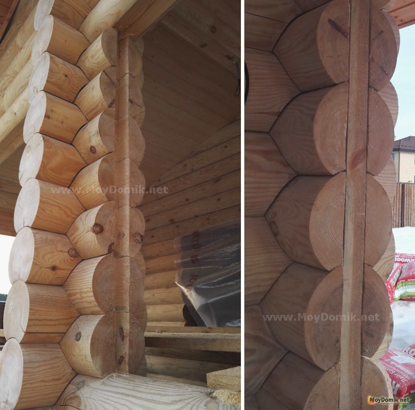 Отделка дома из оцилиндрованного бревна
