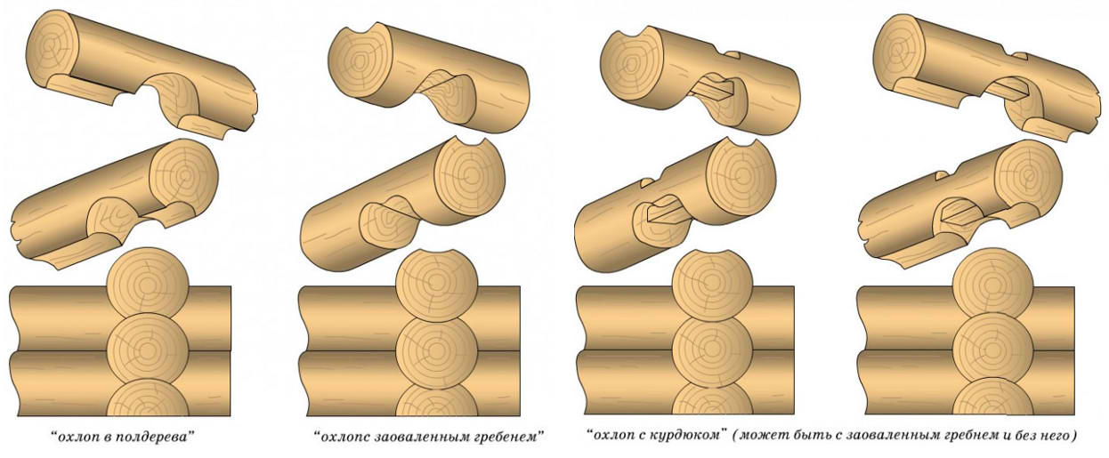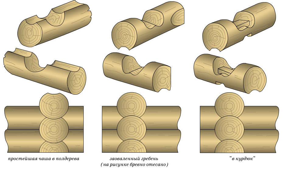 Способы соединения бревен в срубе
