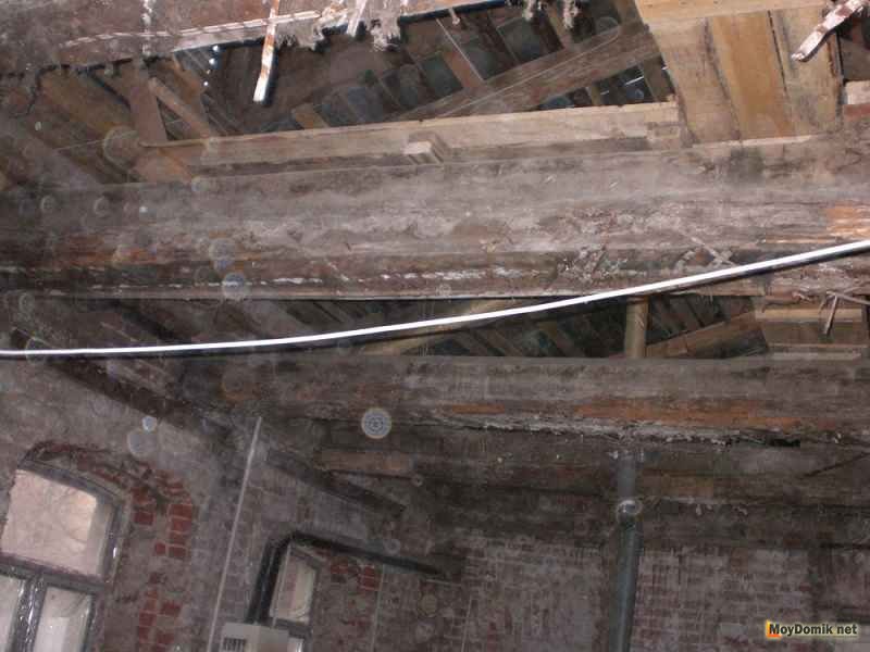 Особенно важно оценить состояние деревянных перекрытий в местах примыкания к стене. Большинство случаев повреждения приходится именно на эти места.